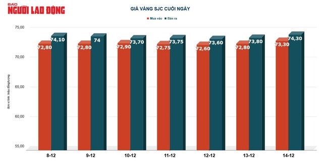 Tại Việt Nam, giá vàng SJC bán ra trong ngày 14/12 gần như bất động, chốt cuối ngày tại 74,3 triệu đồng/lượng./.