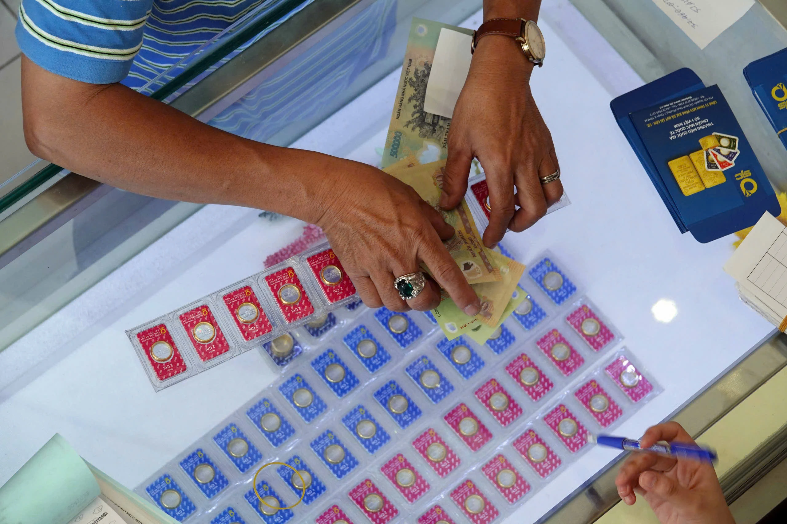 Giá bán vàng nhẫn thấp hơn vàng miếng SJC 600.000 đồng/lượng (ẢNH: NGỌC THẠCH)