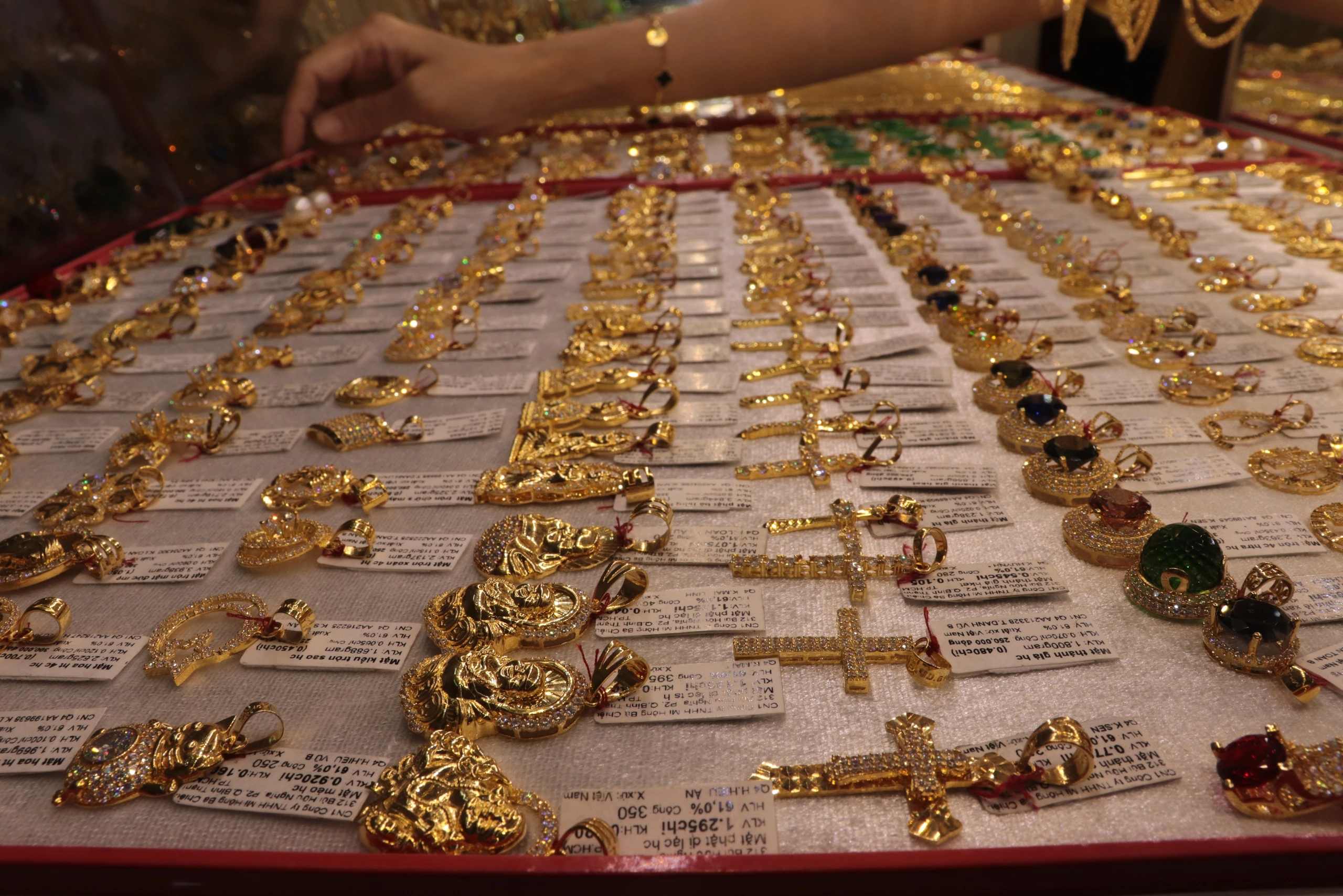Sáng 21/02, giá vàng trong nước duy trì ở mức đỉnh. Cụ thể, vàng miếng được Công ty vàng bạc đá quý Sài Gòn - SJC mua vào ở mức 90 triệu đồng, bán ra 92,3 triệu đồng như cuối ngày hôm qua. Các công ty kinh doanh khác như PNJ, Doji... hiện có giá bán vàng miếng ngang với Công ty SJC. Tổng cộng sau một ngày, mỗi lượng vàng miếng đã tăng 400.000 đồng và đây là mức cao nhất từ trước đến nay.