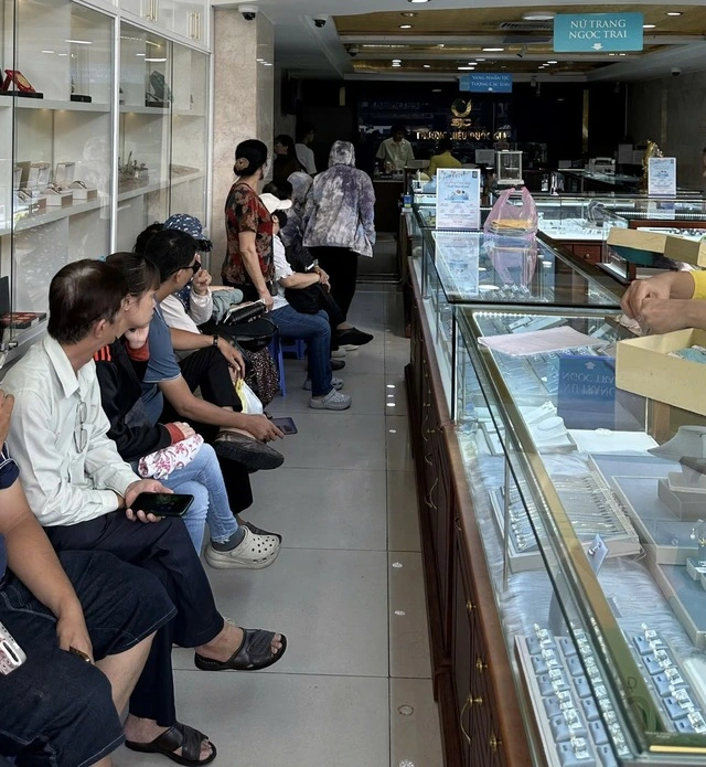 Tương tự, giá vàng nhẫn cũng tăng thêm 3 triệu đồng mỗi lượng, Tập đoàn Doji mua vào lên 117 triệu đồng, bán ra 120 triệu đồng; Công ty SJC mua vào 115,5 triệu đồng, bán ra 118,6 triệu đồng... Lượng khách hàng xếp hàng trước cổng Công ty SJC chờ vào giao dịch vàng đầu ngày 22/4 khá đông.