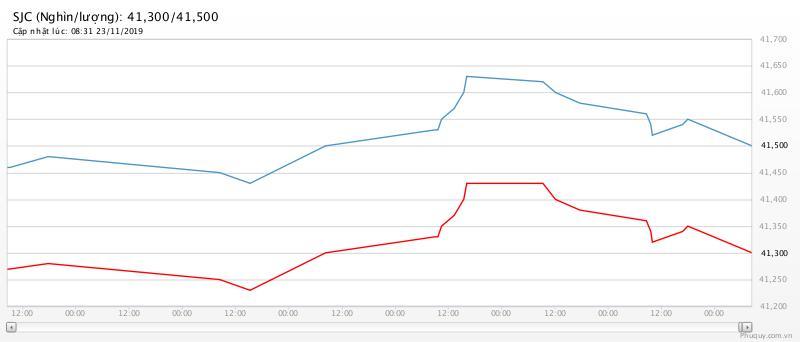 Công ty vàng bạc đá quý Sài Gòn niêm yết giá vàng SJC ở mức 41,28 triệu đồng/lượng (mua vào) và 41,54 triệu đồng/lượng (bán ra) tại Hà Nội. Gia vàng miêng SJC tại TP.HCM niêm yết ở mức 41,52 triệu đồng/lượng./.