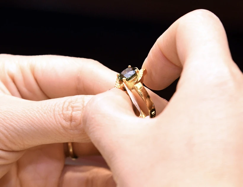 Vàng nhẫn bày bán tại Công ty vàng Bảo Tín Minh Châu. (Ảnh: Trần Việt/TTXVN)