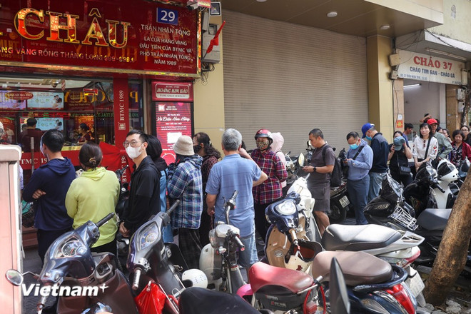 Nhiều người dân xếp hàng để giao dịch vàng (Ảnh: Hoài Nam/Vietnam+)