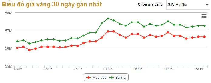 | Biểu đồ giá vàng trong 30 ngày gần đây. |