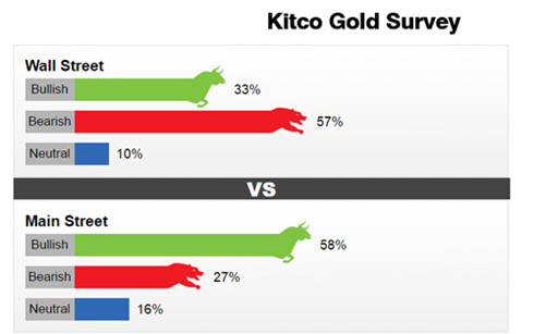 Kết quả cuộc khảo sát của Kitco về giá vàng tuần sau cho thấy, ở Wall Street chỉ có 33% người tham gia khảo sát đặt niềm tin vào đà đi lên của giá kim loại quý trong tuần sau. Có tới 57% tin rằng giá vàng sẽ đi xuống và 10% dự báo giá vàng sẽ đi ngang.