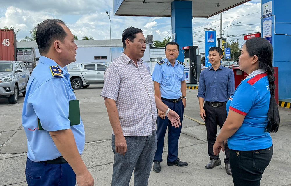 Đoàn Đoàn kiểm tra của Sở Công Thương TP Cần Thơ kiểm tra tình hình kinh doanh của Cửa hàng xăng dầu tại xã Đông Phước. Ảnh: NAM HƯƠNG