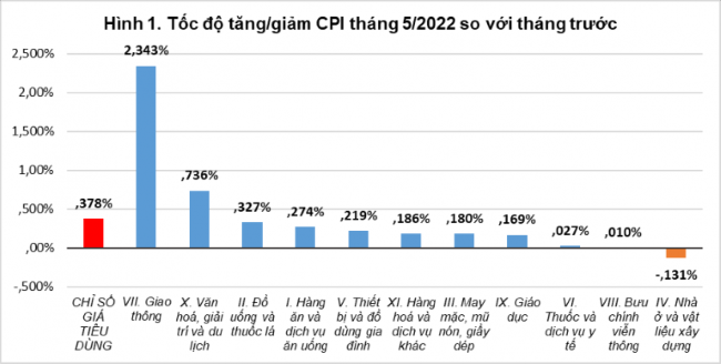 Ngày 29/5, Tổng cục Thống kê đã công bố chỉ số giá tiêu dùng (CPI) tháng 5/2022 tăng 0,38% so với tháng 4/2022, tăng 2,48% so với tháng 12/2021 và tăng 2,86% so với cùng kỳ 2021.