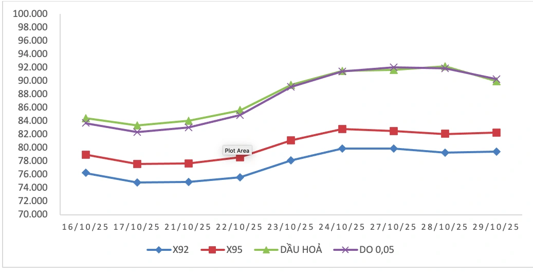 Theo Bộ Công thương, thị trường xăng dầu thế giới kỳ điều hành từ ngày 23 - 29/10 chịu ảnh hưởng của các yếu tố chủ yếu như: Mỹ tuyên bố trừng phạt 2 tập đoàn dầu khí lớn nhất của Nga; các cuộc đàm phán thương mại mới của Mỹ với Ấn Độ và Trung Quốc; OPEC+ dự kiến tăng nhẹ sản lượng khai thác dầu trong tháng 12; xung đột quân sự giữa Nga với Ukraine vẫn tiếp diễn, tập trung vào cơ sở năng lượng của nhau… Các yếu tố nêu trên khiến giá xăng dầu thế giới trong những ngày vừa qua có diễn biến tăng mạnh.