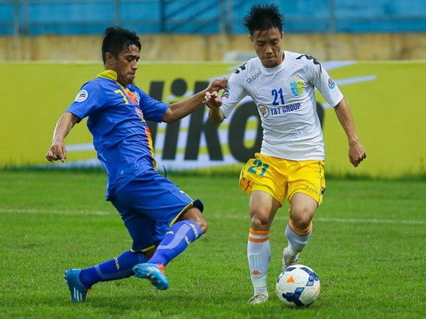Hà Nội T&T (áo trắng) là đội bóng V-League hiếm hoi có thể đáp ứng điều kiện tài chính của ASL. (Ảnh: Minh Chiến/Vietnam+)