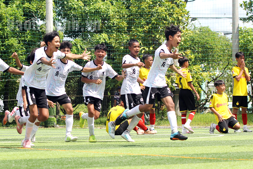 Đội thiếu niên câu lạc bộ Mai Ninh mừng chiến thắng sau khi vượt qua Cầu Ngang trong trận chung kết.