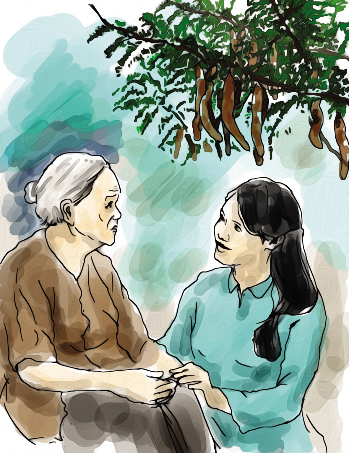Mấy chục năm trước cũng gốc bồ kết này Hai Đài cũng nhào tới dụi đầu vào cô Lãm: "Cả làng Ngọn ai cũng bảo đây là bồ kết của cô Lãm. Lâu nay cứ nửa đêm cháu ra đây lấy trái chín rớt gội cho mình cũng có mái tóc đen mướt như cô". Rồi Hai Đài khóc: "Cô ơi, cháu có bầu rồi, người ta bỏ đi rồi". Hai Đài phận côi cút, quanh năm cắm mặt buôn bán cá tôm ở chợ, một lần lỡ dại mang thai rồi bị bỏ rơi. Cô Lãm đi lo chuyện thuốc thang cho Đài uống cầm dưỡng thai nhi, lo chuyện ăn uống nghỉ dưỡng đến ngày Hai Đài mẹ tròn con vuông. Món quà kỷ niệm chia tay Đài ngày cô Lãm ra chợ là tặng Đài cái nhà ghe và số đồ gia dụng hằng ngày.