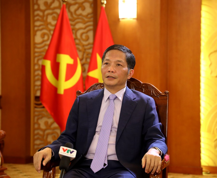 | Đồng chí Trần Tuấn Anh - Ủy viên Bộ Chính trị, Trưởng Ban Kinh tế Trung ương, Phó trưởng Ban Thường trực Ban Chỉ đạo Trung ương về Nghị quyết 18-NQ/TW trả lời phỏng vấn báo chí. |