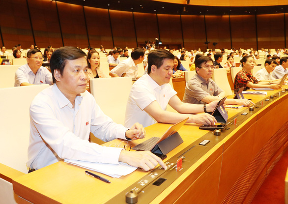 | Các đại biểu nhấn nút thông qua Nghị quyết. (Ảnh: quochoi.vn) |