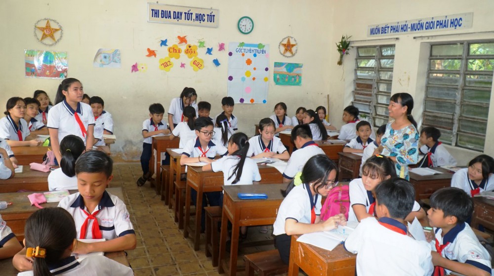 Giờ học của học sinh Trường THCS Thới An Đông.