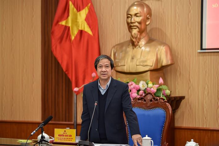 | Bộ trưởng Nguyễn Kim Sơn phát biểu tại buổi làm việc. |