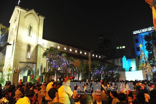 Ngoài Nhà thờ Lớn, từ chập tối, hàng vạn giáo dân cũng nô nức đổ về những nơi thờ tự khác của bà con công giáo như Hàm Long, Thái Hà, Làng Tám... Tại những nơi này, tất cả đã trang hoàng rực rỡ cho Lễ Thiên Chúa Giáng sinh. Hòa cùng dòng người vào Nhà thờ Hàm Long, chị Mai Thu Hương, 39 tuổi, ở Nguyễn Công Trứ, Hai Bà Trưng, chia sẻ: Dù gia đình không theo đạo, nhưng nhiều năm nay, chị đều cùng chồng cố gắng thu xếp để cả gia đình đến trước nhà thờ hòa chung không khí vui tươi, đầm ấm và được lắng nghe tiếng chuông nhà thờ điểm lúc 0 giờ. "Ngày lễ Noel trước đây là ngày của người công giáo, nhưng hiện nay Noel cũng là ngày hội chung của mọi người trên cả nước. Tôi mong muốn là năm tới, cuộc sống sẽ luôn bình an, tươi vui, hạnh phúc, mọi người đều có ý thức và thực hiện chia sẻ, đùm bọc, giúp đỡ nhau để xây dựng cuộc sống ngày càng tốt đẹp hơn", chị Hương vui vẻ nói.