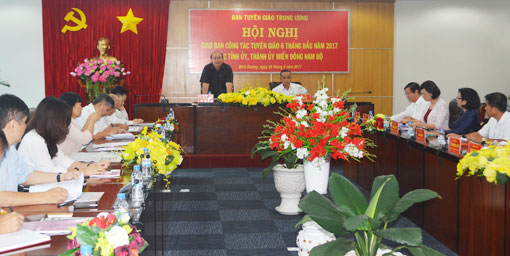 Trong 6 tháng đầu năm 2017, kinh tế - xã hội các tỉnh, thành phố khu vực Đông Nam bộ tiếp tục phát triển khá toàn diện. Công tác tuyên giáo tại các tỉnh, thành ủy cũng cơ bản hoàn thành nhiệm vụ được giao. Theo đó, đã tham mưu cấp ủy triển khai quán triệt, thực hiện các nghị quyết, chỉ thị của Trung ương nhanh chóng, kịp thời, đồng thời đổi mới phương thức triển khai nghị quyết, chỉ thị như thực hiện Chỉ thị 05-CT/TW gắn với Nghị quyết Trung ương 4, khóa XII; đổi mới công tác tuyên truyền; có nhiều cố gắng trong nắm bắt tình hình diễn biến tư tưởng của cán bộ, đảng viên; quan tâm công tác điều tra dư luận xã hội…
