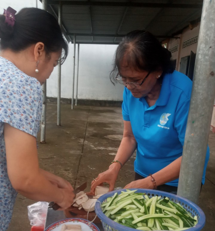 Mặt khác, nhóm còn là bếp ăn từ thiện, cung cấp các suất ăn miễn phí cho người có hoàn cảnh khó khăn trên địa bàn phường. Mỗi tháng, bà góp khoảng 500.000 đồng để ủng hộ bếp. Bên cạnh đó, bà cũng quan tâm đến những hoàn cảnh từng nhận hỗ trợ và thường xuyên đến thăm hỏi, cập nhật tình hình sức khỏe, đời sống để kịp thời giúp đỡ.