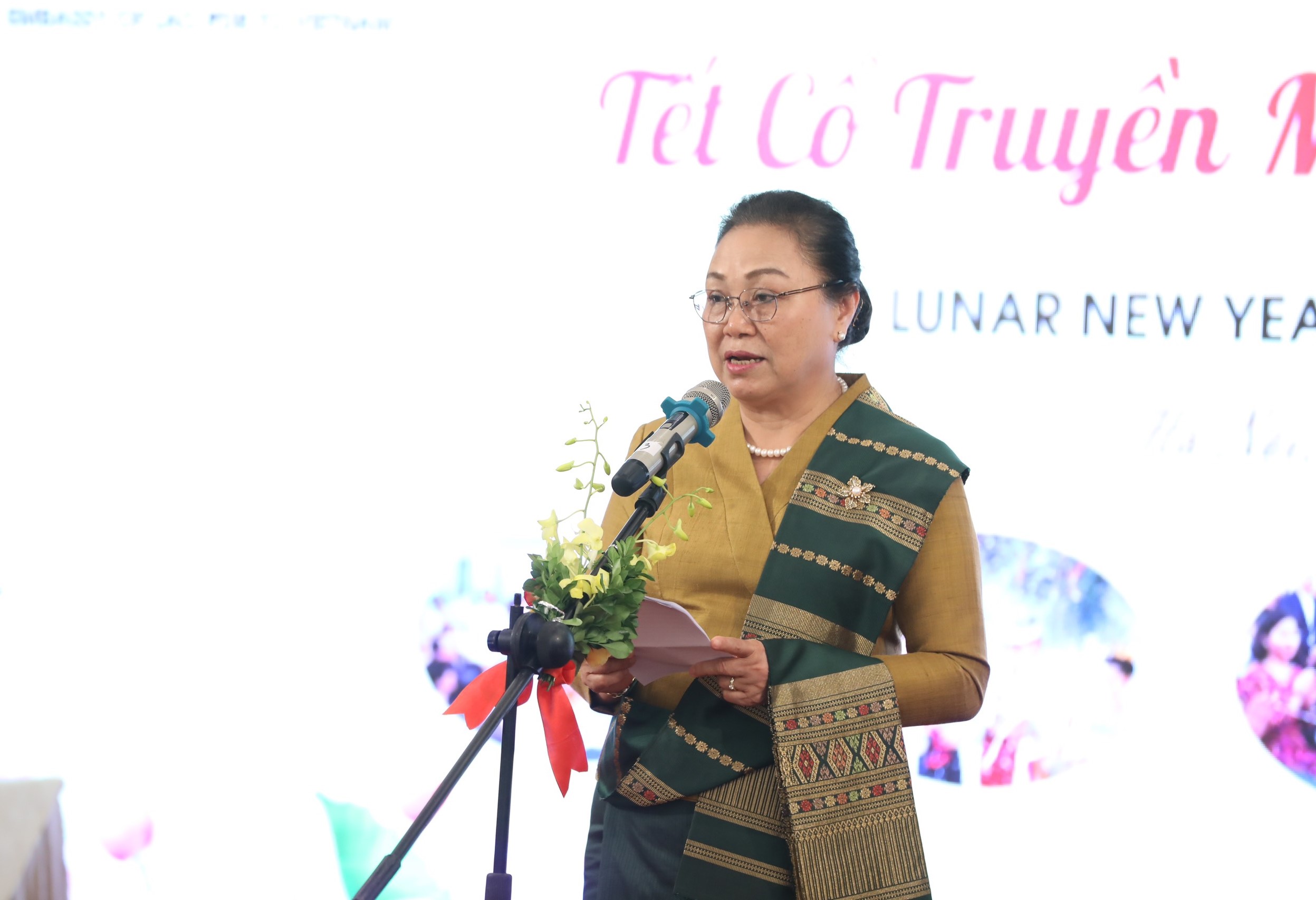 Tại chương trình, Đại sứ Khamphao Ernthavanh đã giới thiệu tới các đại biểu về lễ hội Bunpimay truyền thống của Lào với ý nghĩa xua đi những điều không tốt, không lành và chúc tụng, cầu mong cho nhau một năm mới có cuộc sống ấm no, hạnh phúc, cây cối đâm chồi, nảy lộc, mưa thuận, gió hòa, mùa màng bội thu và cầu mong cho đất nước thanh bình, thịnh vượng.