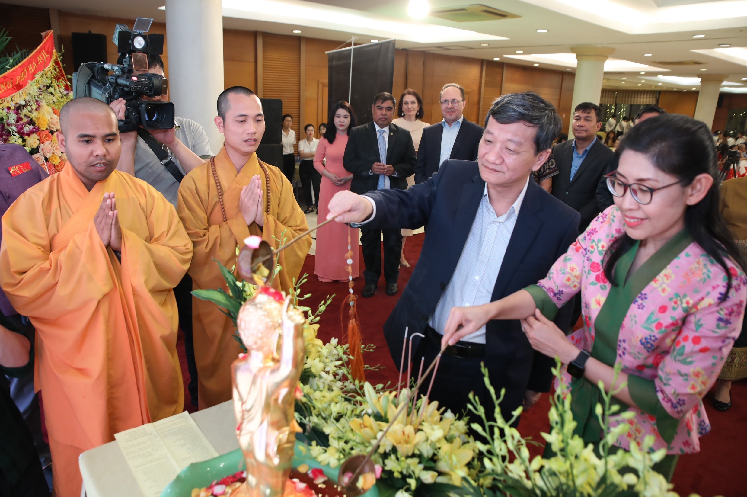 Trong không khí giao lưu thân mật, ấm áp tình hữu nghị, các đại biểu cùng tham gia các nghi lễ truyền thống như: Lễ tắm tượng Phật, té nước cầu may, lễ buộc chỉ cổ tay, lễ hội Holi; thưởng thức các tiết mục nghệ thuật đặc sắc do các nghệ sĩ Việt Nam cùng cán bộ các Đại sứ quán và lưu học sinh của các nước biểu diễn.