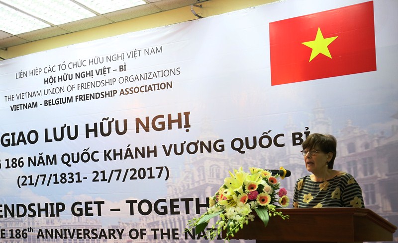 Phát biểu bày tỏ cảm ơn Hội Hữu nghị Việt Nam – Bỉ đã tổ chức chương trình giao lưu ý nghĩa nhân kỷ niệm 186 năm Ngày Quốc khánh Vương quốc Bỉ, Đại sứ Vương quốc Bỉ tại Việt Nam Jehanne Roccas cho biết, 186 năm trước, Hoàng tử Leopold de Saxe-Coburg-Gotha đã tuyên thệ và trở thành vị vua đầu tiên của người dân Bỉ. Vương quốc Bỉ đã nhanh chóng trở thành một quốc gia công nghiệp hóa, một nền kinh tế tiên tiến, hiện đứng thứ 21 về Chỉ số Phát triển Con người.