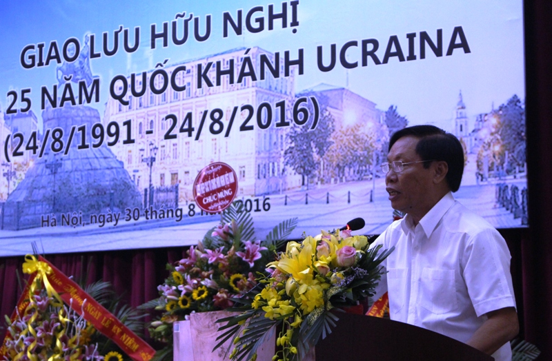 Phát biểu tại buổi Lễ, Chủ tịch Hội hữu nghị Việt Nam – Ukraine Đặng Văn Chiến gửi lời chúc mừng đến toàn thể lãnh đạo và nhân dân Ukraine nhân dịp kỷ niệm 25 năm Quốc khánh. Về quan hệ song phương giữa Việt Nam và Ukraine, Chủ tịch Hội hữu nghị Việt Nam – Ukraine Đặng Văn Chiến nhấn mạnh: Việt Nam và Ukraine luôn là những người bạn gắn bó thủy chung, dài lâu. Trong nhiều năm, Ukraine đã hỗ trợ đào tạo hàng ngàn cán bộ khoa học kỹ thuật, công nhân lành nghề thuộc tất cả các ngành, lĩnh vực. Hiện Việt Nam và Ukraine đã thiết lập quan hệ Đối tác hợp tác toàn diện. Hai nước thường xuyên trao đổi đoàn, bao gồm cả Đoàn cấp cao theo kênh Nhà nước, Quốc hội và Chính phủ. Trong lĩnh vực hợp tác kinh tế - thương mại, trao đổi thương mại song phương vẫn còn nhiều tiềm năng, hứa hẹn sẽ tăng trưởng mạnh mẽ. Hai nước phấn đấu sớm nâng kim ngạch thương mại song phương lên 1 tỷ USD. Bên cạnh đó, hợp tác trong các lĩnh vực khoa học – kỹ thuật, văn hóa giáo dục, du lịch giữa Việt Nam và Ukraine cũng không ngừng phát triển. Hiện có gần 10 ngàn kiều bào Việt Nam làm ăn, sinh sống và học tập tại Ukraine. Họ là cầu nối quan trọng, góp phần tăng cường quan hệ hữu nghị và hợp tác giữa hai nước.