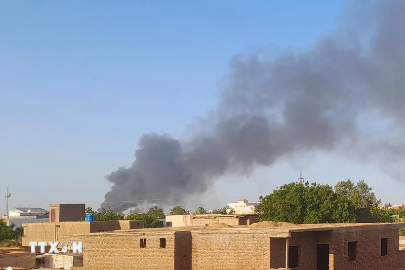 Khói bốc lên trong cuộc giao tranh tại Sudan. (Ảnh: AFP/TTXVN)
