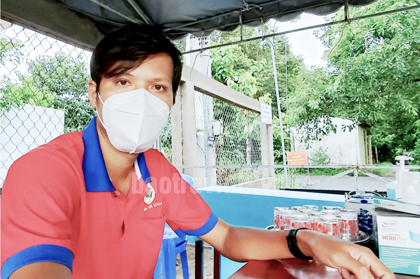 Thầy Lư Văn Sa Rinh tham gia trực chốt phòng, chống dịch bệnh. Ảnh do nhân vật cung cấp
