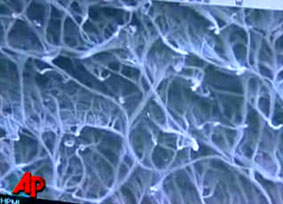 | Ảnh chụp dưới kính hiển vi các phân tử hình ống tạo thành giấy Bucky. Ảnh: AP |
