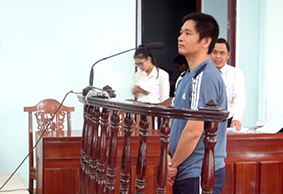 Bị cáo Nguyễn Thanh Đông đứng trước vành móng ngựa.