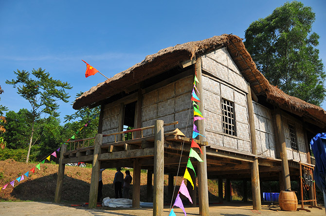 | Mẫu nhà sàn truyền thống của người Ơ Đu. (Ảnh: D Bình) |