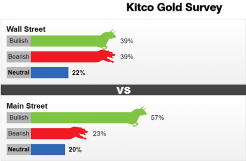 Theo khảo sát giá vàng do Kitco News thực hiện, trong khi các chuyên gia phố Wall chia rẽ về nhận định giá vàng trong tuần tới, thì kết quả khảo sát trực tuyến lại cho thấy dự báo lạc quan về giá vàng sẽ tăng trong tuần tới.