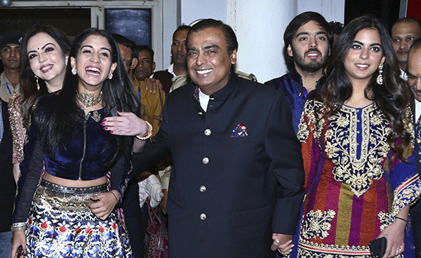 Tỉ phú Ấn Độ Mukesh Ambani (giữa) hiện là người giàu nhất châu Á. Ảnh: SCMP