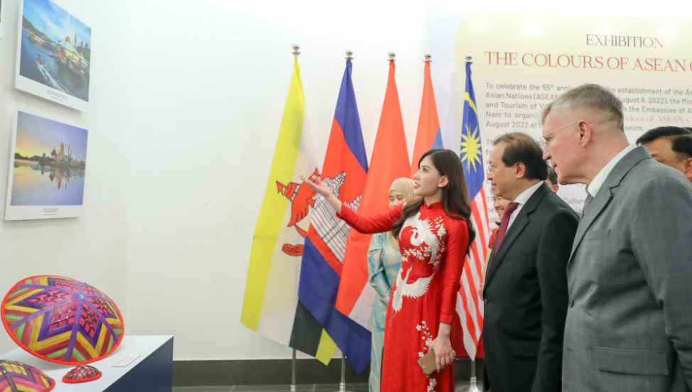Chào mừng kỷ niệm 55 năm ngày thành lập Hiệp hội các quốc gia Đông Nam Á, ASEAN (8/8/1967 - 8/8/2022), ngày 8/8, tại Bảo tàng Mỹ thuật Việt Nam, Bộ Văn hóa, Thể thao và Du lịch phối hợp với Đại sứ quán các nước ASEAN tổ chức triển lãm Sắc màu Văn hoá ASEAN.