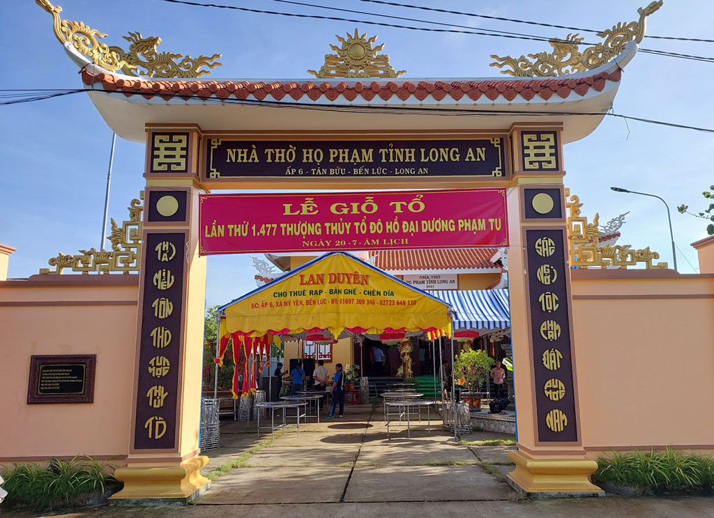 Vào ngày 10/10/2020, công trình Nhà thờ họ Phạm tỉnh Long An được khởi công xây dựng khang trang trên diện tích 500m2 đất của gia tộc do con cháu họ Phạm quản lý (tại ấp 6, xã Tân Bửu, huyện Bến Lức). Công trình này có ý nghĩa quan trọng đối với dòng họ Phạm cả nước nói chung và Long An nói riêng. Hàng năm, vào ngày 20/7 Âm lịch, tại đây diễn ra Lễ giỗ Tổ Đô Hồ Đại Vương Phạm Tu. Đây là dịp để con cháu Phạm tộc về tưởng nhớ, tri ân công đức của Thượng Thủy tổ và các bậc tiền nhân, tiền hiền, các chi tộc họ Phạm.