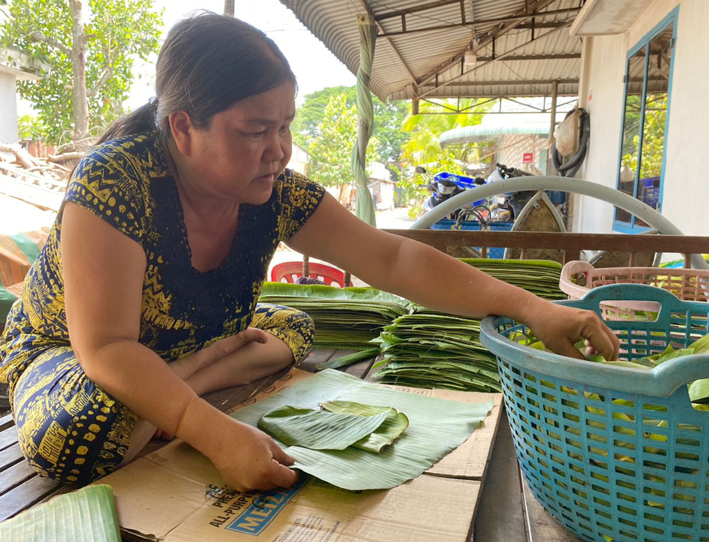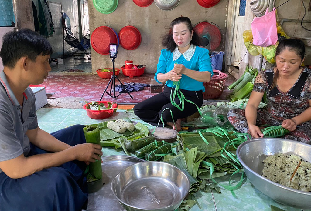 Trước đây, tôi chỉ bán theo kiểu truyền thống nhưng thời gian gần đây, tôi chuyển sang vừa gói, vừa livestream bán hàng trên Facebook. Nhờ vậy, số lượng bánh tăng lên gấp 2-3 lần so với cách bán truyền thống. Bình quân mỗi ngày, tôi gói trên 100 đòn bánh tét các loại và tạo việc làm thường xuyên cho 2 lao động nhàn rỗi ở địa phương”.