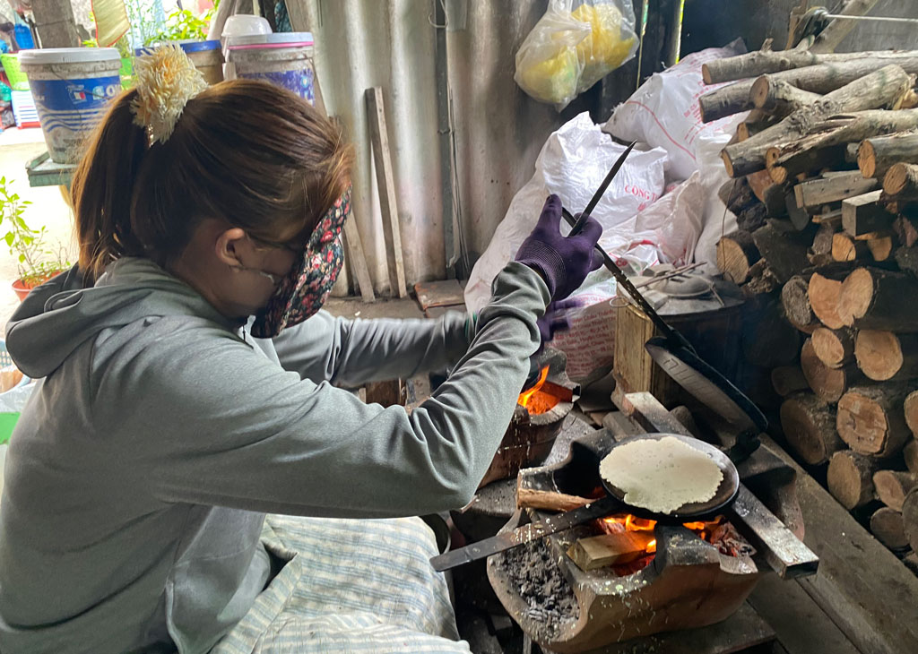 Theo chị Lê Thị Hằng Như, bánh kẹp cuốn phải nướng bằng bếp củi mới có mùi thơm đặc trưng của bánh truyền thống