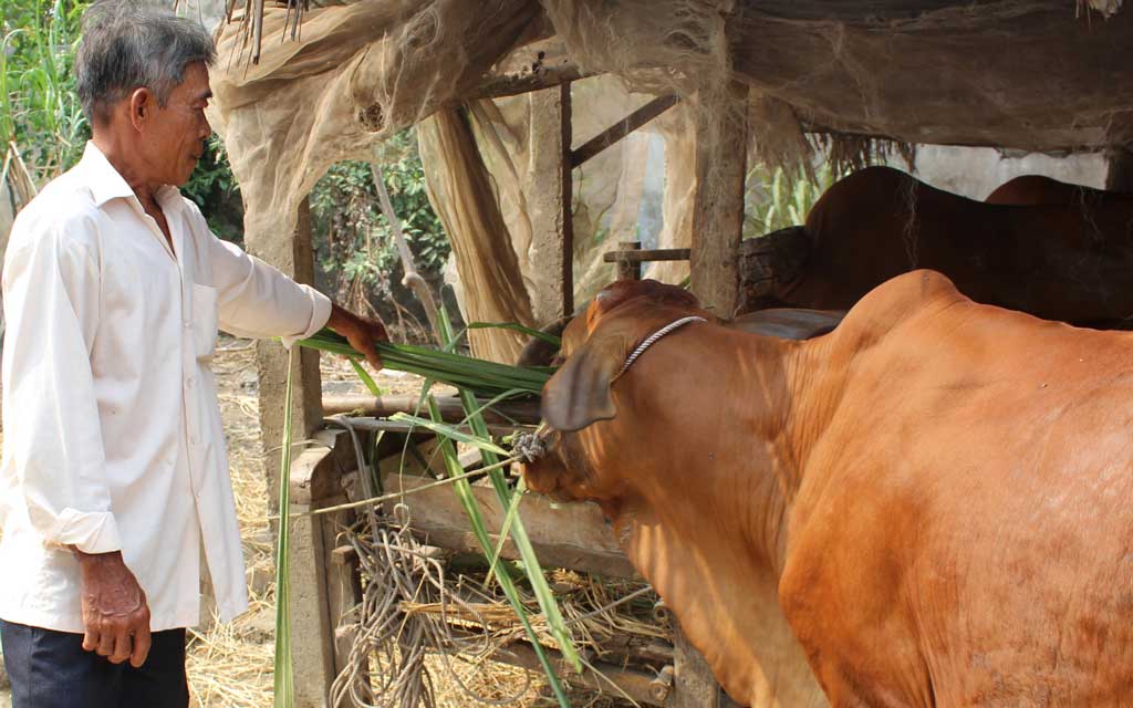 Ông Huỳnh Văn Hồi, ngụ xã Phước Lâm nhờ chuyển đổi từ trồng lúa sang trồng hoa màu và chăn nuôi bò nên kinh tế gia đình ổn định và nuôi các con ăn học thành tài