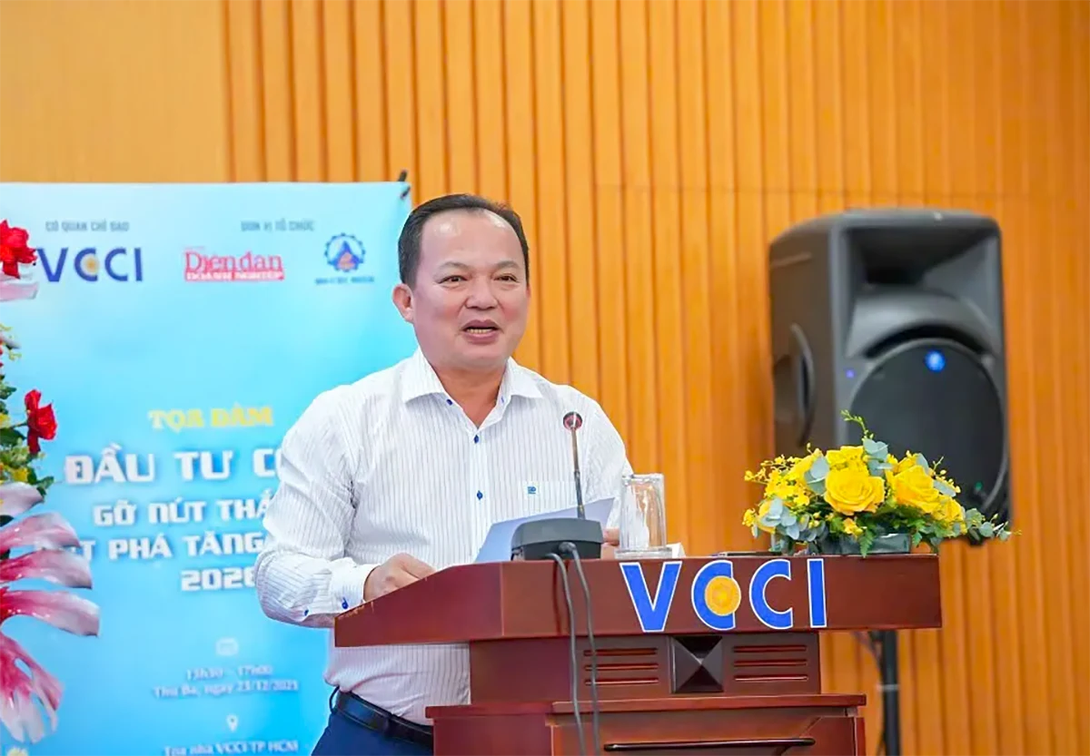 (CTO) - Ngày 23-12, tại TP Hồ Chí Minh, Liên đoàn Thương mại và Công nghiệp Việt Nam (VCCI) chỉ đạo Tạp chí Diễn đàn Doanh nghiệp phối hợp với Hiệp hội Công nghiệp Khoáng sản TP Hồ Chí Minh tổ chức tọa đàm "Đầu tư công: Gỡ nút thắt để bứt phá tăng trưởng 2026".