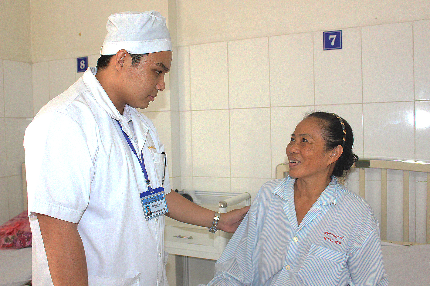 Bác sĩ BV Đa khoa quận Thốt Nốt thăm hỏi người bệnh BHYT điều trị tại BV.