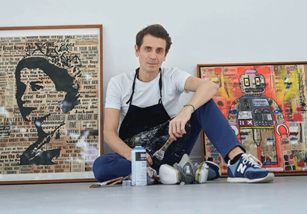 Họa sĩ người Pháp Gabriel Dufourcq (ảnh) được xem như người kết nối các thời đại, qua các bức tranh sáng tạo bằng cách sử dụng giấy báo cũ có tuổi đời hàng trăm năm và tiêu đề các bài báo, để khắc họa chân dung nhân vật lịch sử hay một sự kiện.