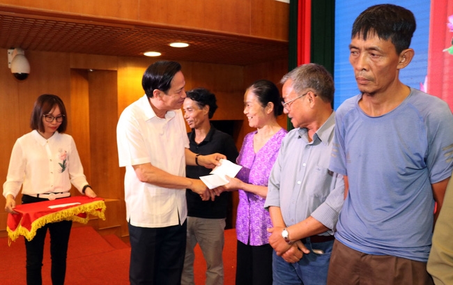 | Bộ trưởng Đào Ngọc Dung trao tiền hỗ trợ cho người lao động tự do bị ảnh hưởng bởi COVID-19. (Ảnh: Mạnh Dũng) |