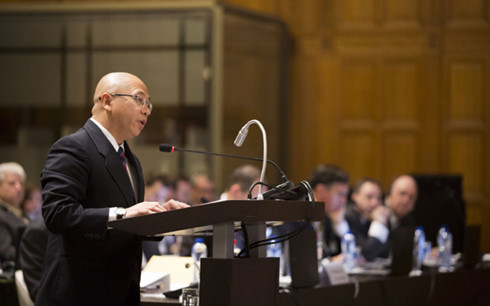 Một đại diện của Philippines tại một phiên điều trần của Tòa trọng tài UNCLOS ở PCA vào tháng 11/2015. Ảnh: PCA.