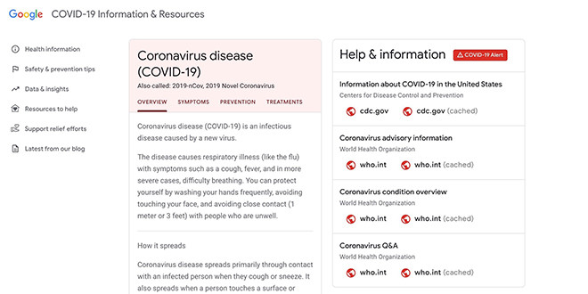 Google ra mắt trang web Covid-19