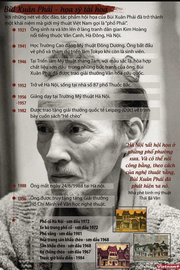 Danh họa Bùi Xuân Phái có một tình yêu đặc biệt với Hà Nội. Các tác phẩm hội họa bằng chất liệu sơn dầu về phố cổ Hà Nội đã lôi cuốn công chúng nhiều thế hệ. Nhiều người hâm mộ đã gọi dòng tranh phố của ông là "Phố Phái."