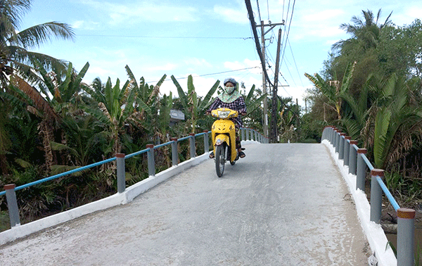 Cầu Xẻo Tre sau khi hoàn thành, người dân phấn khởi, đi lại thuận tiện.