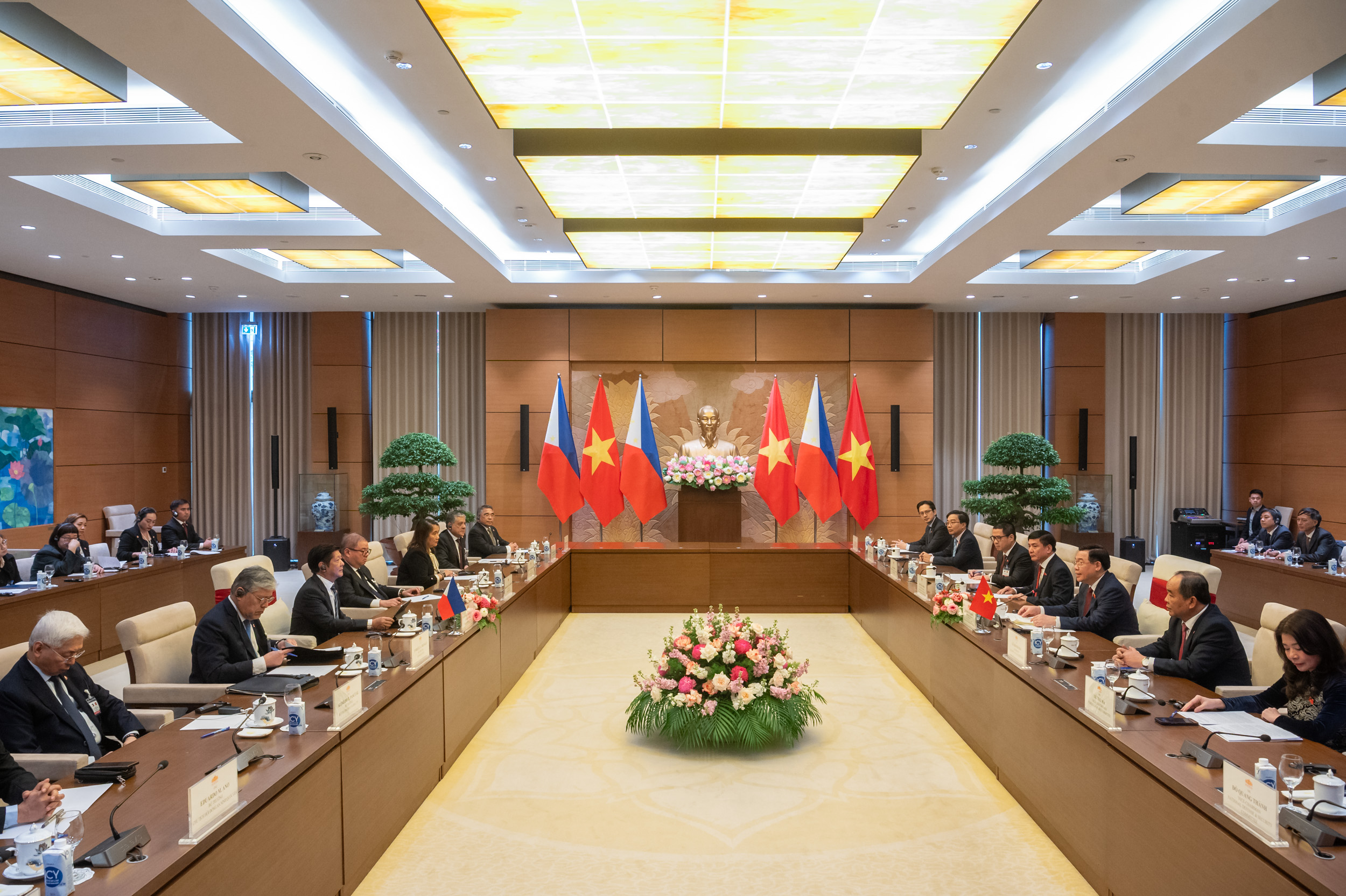 Chào mừng Tổng thống Philippines Ferdinand Romualdez Marcos Jr. và Phu nhân lần đầu tiên thăm cấp Nhà nước Việt Nam và ngay trước thềm Tết cổ truyền của Việt Nam, Chủ tịch Quốc hội nhấn mạnh chuyến thăm Việt Nam của Ngài Tổng thống là nguồn xung lực mạnh mẽ góp phần thắt chặt quan hệ Đối tác chiến lược Việt Nam - Philippines.