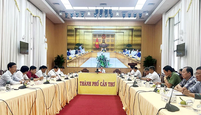 Ông Dương Tấn Hiển, Phó Chủ tịch Thường trực UBND TP Cần Thơ cùng lãnh đạo các sở, ngành hữu quan thành phố dự tại điểm cầu của TP Cần Thơ.