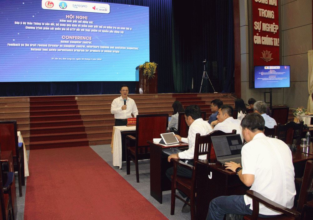 Theo đó, các đại biểu tham dự hội nghị đã được nghe đại diện Cục Thú y trình bày về Dự thảo Thông tư sửa đổi, bổ sung Thông tư số 09/2016/TT- BNNPTNT của Bộ trưởng Bộ Nông nghiệp và Phát triển nông thôn quy định về kiểm soát giết mổ và kiểm tra vệ sinh thú y; Thông tư số 10/2022/TT-BNNPTNT của Bộ Nông nghiệp và Phát triển nông thôn về Sửa đổi, bổ sung một số điều của Thông tư số 09/2016/TT-BNNPTNT, ngày 01/6/2016 của Bộ trưởng Bộ Nông nghiệp và Phát triển nông thôn quy định về kiểm soát giết mổ và kiểm tra vệ sinh thú y và Chương trình giám sát quốc gia về an toàn thực phẩm đối với thực phẩm có nguồn gốc từ động vật.
