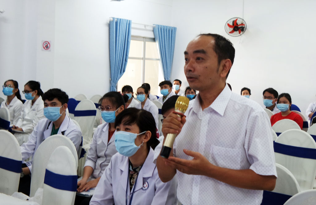 Tại hội nghị, các y, bác sĩ, dược sĩ cũng quan tâm, nêu ý kiến một số vấn đề và được giải đáp các thắc mắc về điều trị tăng huyết áp.